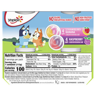 Double the Fun: The New Yoplait® Trix™ Reduced Sugar Yogurt! Single Serve Yogurt PDF *Sugar content lowered 35%, from 14g in retail Trix yogurt to 9g per serving. Yoplait® Trix™ Gluten Free Yogurt Single Serve Cup Raspberry Rainbow ... Low fat, kid-friendly Yoplait® Trix™ gluten-free yogurt made with creamy, low fat raspberry flavor in a 4 oz single serve cup. Made without gelatin. Made with n ... Nutrition Facts. Nutrition Facts. Ingredients & Allergens. Ingredients & Allergens. Preparation Instructions. Preparation Instructions Frequently Purchased Together ... Trix Yogurt Nutrition Facts - Eat This Much Trix Yogurt Low Fat, Strawberry Banana Bash - Yoplait Main info: Trix YogurtLow Fat, Strawberry Banana Bash - Yoplait1 container100.0 Calories20.1 g0.5 g2.9 g0 g3.0 mg0.5 g50.0 mg0 g0 g Report a problem with this food Find on Amazon Percent calories from... gramscontaineroz Nutrition Facts