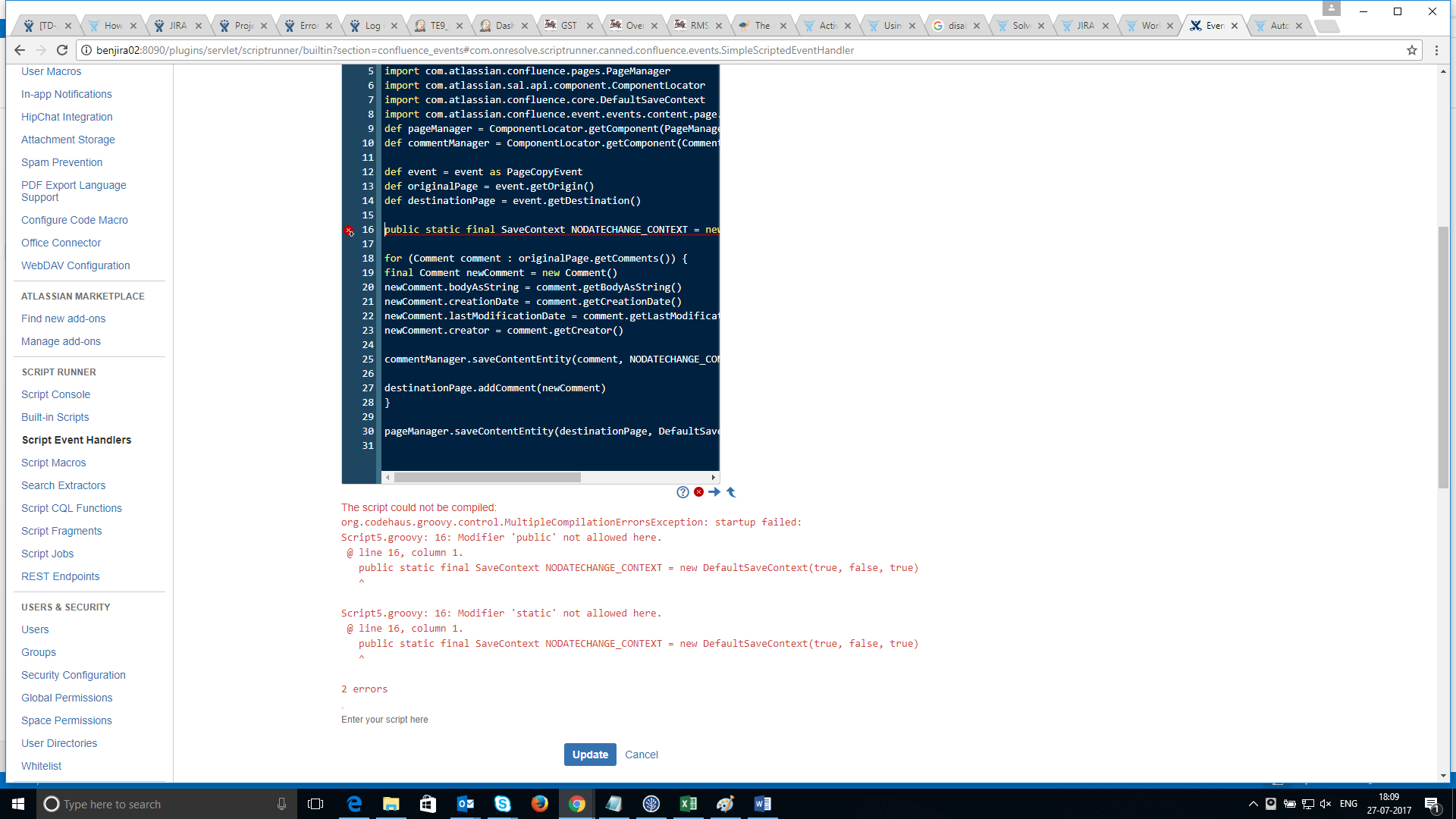 Confluence, ScriptRunner and Impersonation - Modus Create Navigate to Confluence Administration On the left navigation find the ScriptRunner menu and select the REST Endpoints tab Select Add New Item, and then select the Custom endpoint option to add your own. You will then be presented with the following screen: To the inline script section add the following Groovy code.