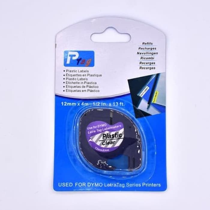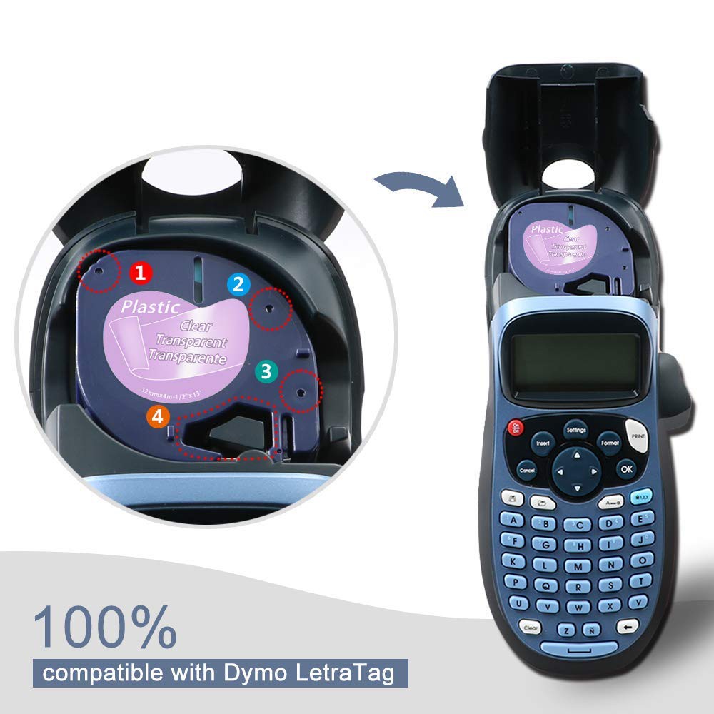 Dymo Letratag tape 12267 12mm Black on Clear Plastic Tapes 12268 16951 16952 Label Tape Compatible Dymo LT-100H Label printer
