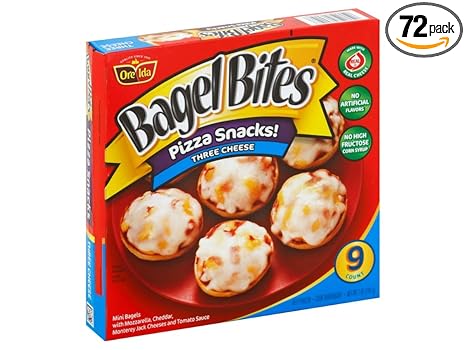 52222 - Whole Grain 3 Cheese Mini Pizza Bagel - Tasty Brands 52222 - Whole Grain 3 Cheese Mini Pizza Bagel. • 50% Whole Grain, excellent tasting. • 3 Cheese - Mozzarella, Cheddar, Monterey Jack. • "Bagel Bites" for School Foodservice. • Packed 384/1.17oz; 96 Servings Per Case; 4 per serving; 2m/ma, 2 bread.