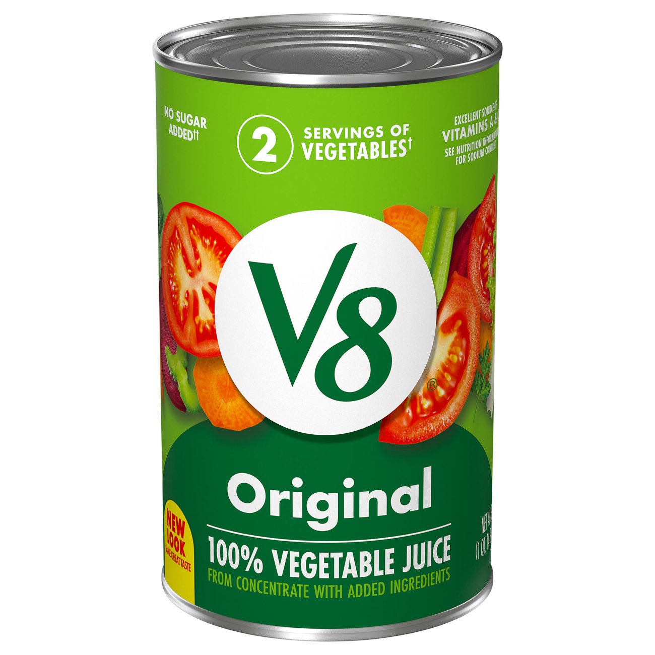 V8 Original 100% Vegetable Juice, 64 FL OZ Bottle - Walmart.com Enjoy this V8 100% juice as a wholesome afternoon snack on a busy day, or drink it post workout to refill your body with nutrients. Experience the delicious taste of V8: The Original Plant-Powered Drink.In addition to Original, V8 Vegetable Juice is also available in other delicious varieties, including High Fiber, Spicy Hot, Hint of Black ...