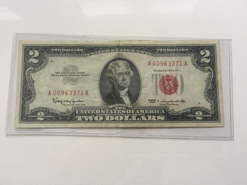 2 dollar bill with red ink 1963