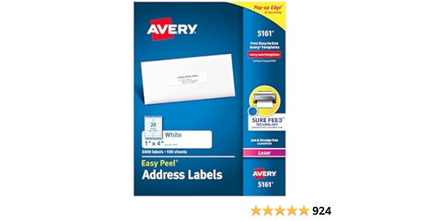 Avery 5161 labels. Free Downloadable Blank Templates | Avery WebAvery Templates. Find the Right Template to print your Avery Product. Please enter a valid template SKU. Labels . Business Cards . Cards . Name Tags & Badges . File Folder Labels . Binder, Dividers & Tabs . Rectangle Labels . Round Labels . Oval Labels . Square Labels . Media . Other Shape Labels . Free Label Printing Software - Avery Design & Print WebUSA. Avery Design & Print Online is so easy to use and has great ideas too for creating unique labels. I use the 5160 labels to create holiday labels for my association every year. We have over 160 members that we send cards to and all I have to do is use my Excel file of member names and import them into the my design that I created. Avery templates for Microsoft Word | Avery The only thing you need to do is to download the template matching the product, you like to print. Simply type in the software code in the field here under, then you will be transferred to a Landing page where you can download templates exactly matching your Avery product. While Word® is ideal for simple text editing and address labels, if you would like to be more creative in your label design, we recommend using Avery Design & Print. Avery: Name Meaning, Origin, Popularity - Verywell Family Oct 7, 2021 · The name Avery is an English and French name meaning "ruler of elves." It's derived from the Anglo-Saxon name Alfred and the Ancient Germanic name Alberich. Its meaning stems from the elements aelf, meaning "elf" and ric, meaning "ruler." Avery was mainly used for boys until around 2007, when it broke into the top 50 names for baby girls in the U.S.