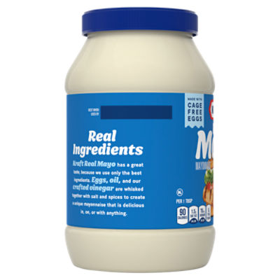 Kraft Real Mayonnaise - Shop Condiments at H-E-B Ingredients Soybean Oil, Water, Vinegar, Eggs, Contains Less than 2% of Sugar, Salt, Egg Yolks, Natural Flavor (Contains Mustard), Lemon Juice Concentrate, ... Nutrition information for Kraft Mayonnaise Kraft Mayonnaise. Nutrition Facts. Serving Size 1 tablespoon. Amount per serving. Calories, 98, Calories from Fat, 96. % Daily Value. Kraft Real Mayonnaise Nutrition Facts - Eat This Much Calories, carbs, fat, protein, fiber, cholesterol, and more for Kraft Real Mayonnaise (Jack in the Box). Want to use it in a meal plan?