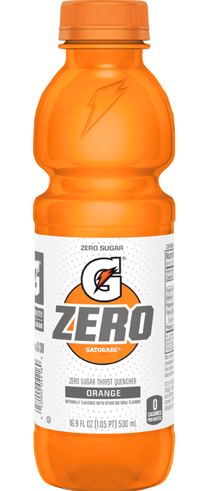 Gatorade Zero 20 oz Orange Thirst Quencher, Pack of 24 Note · you must order at least 20 items ; Nutrition Facts. Serving Size 1 Bottle (591 ml) ; Total Fat 0 g, 0% ; Sodium 270 mg, 11% ; Potassium 75 mg, 2%.