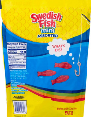 Calories in Swedish Fish - Nutritionix Swedish Fish Nutrition Facts Serving Size: pieces ( 35g ) Swedish Fish Amount Per Serving Calories 140 % Daily Value* Total Fat 0g 0% Saturated Fat 0g 0% Polyunsaturated Fat 0g Monounsaturated Fat 0g Cholesterol 0mg 0% Sodium 16mg 1% Total Carbohydrates 35g 13% Dietary Fiber 0g 0% Sugars 21g Protein 0g Vitamin D 0mcg 0% Calcium 1.1mg 0% Swedish Fish Nutrition Facts - Eat This Much Nutrition Facts. For a Serving Size of 19 pieces ( 40 g) How many calories are in Swedish Fish? Amount of calories in Swedish Fish: Calories 140. Calories from Fat 0 ( 0 %) % Daily Value *. How much fat is in Swedish Fish? Swedish Fish Candy Calories, Carbs & Nutrition Facts | MyFitnessPal 1800 Cal. 200/2000Cal left. Fitness Goals: Heart Healthy. Fat 67 g. --/67g left. Sodium 2260 mg. 40/2300mg left. Cholesterol 300 mg. Calories in Swedish Fish Candy - SparkPeople Swedish Fish Candy (1 serving) Calories: 110, Fat: 0g, Carbs: 39g, Protein: 0g Show full nutrition information Swedish Fish Candy (1 serving) Calories: 140, Fat: 0g, Carbs: 36g, Protein: 0g Show full nutrition information Swedish Fish Candy (1 serving) Calories: 140, Fat: 0g, Carbs: 36g, Protein: 0g Show full nutrition information