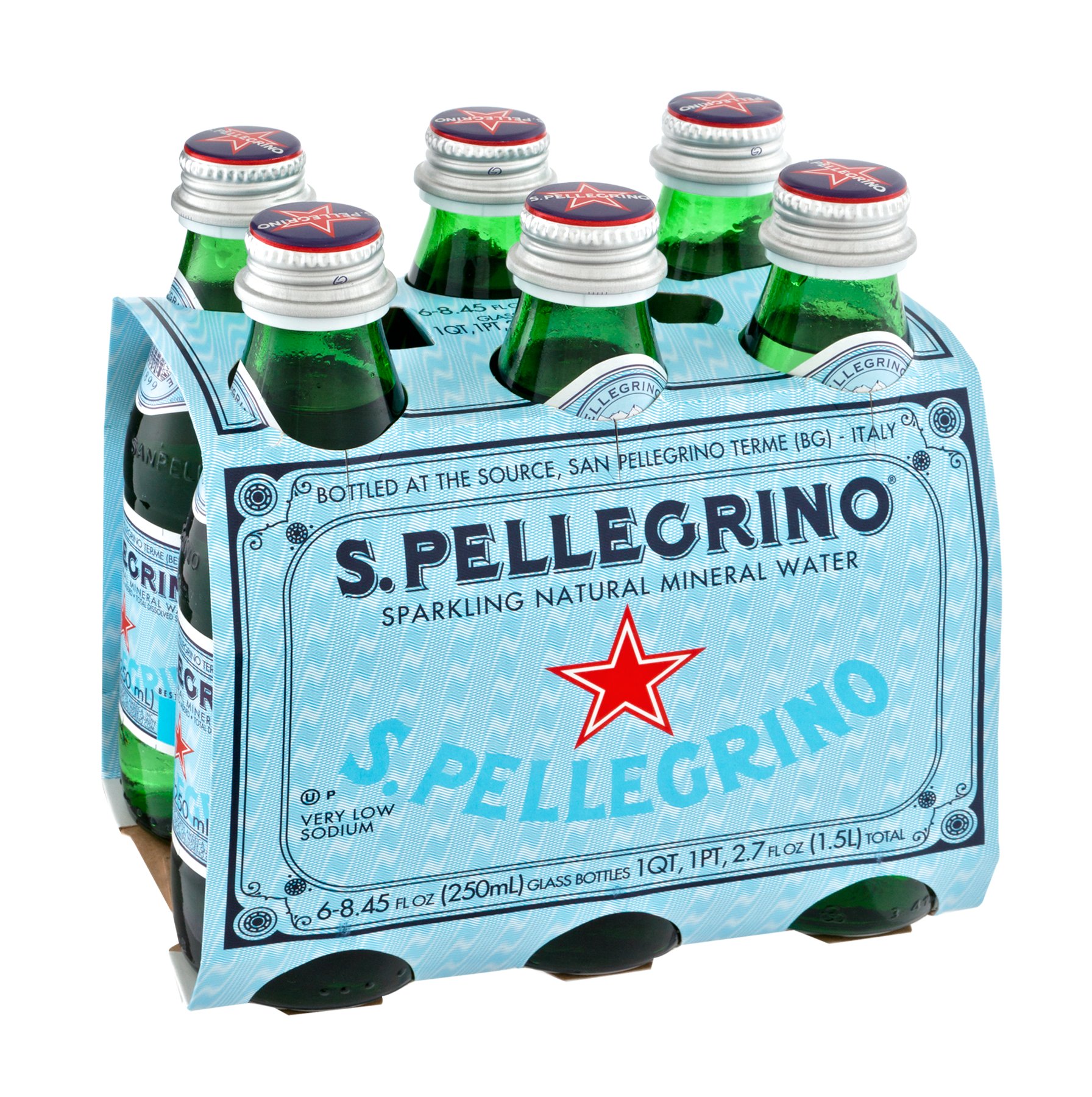 Nutrition Facts for S.Pellegrino Sparkling Natural Mineral Water Protein 0g. 3% Calcium 40mg. 0% Iron 0mg. 0% Vitamin A 0mcg. 0% Vitamin C 0mg. *. The % Daily Value (DV) tells you how much a nutrient in a serving of food contributes to a daily diet. 2,000 calories a day is used for general nutrition advice. 0 Net Carbs Per Serving. Add to Food Diary.